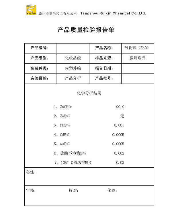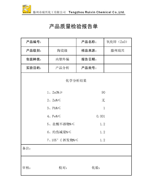 瑞興化工有限公司是生產(chǎn)氧化鋅的重點(diǎn)企業(yè),于2008年通過ISO9001:2008質(zhì)量管理體系認(rèn)證。“瑞興”牌氧化鋅在國內(nèi)擁有較大穩(wěn)定的市場(chǎng),并遠(yuǎn)銷東南亞、中東、中南美等國家和地區(qū),在國內(nèi)外享有較高聲譽(yù)。